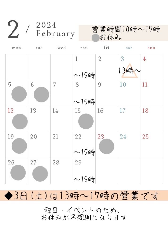 2月の営業カレンダー