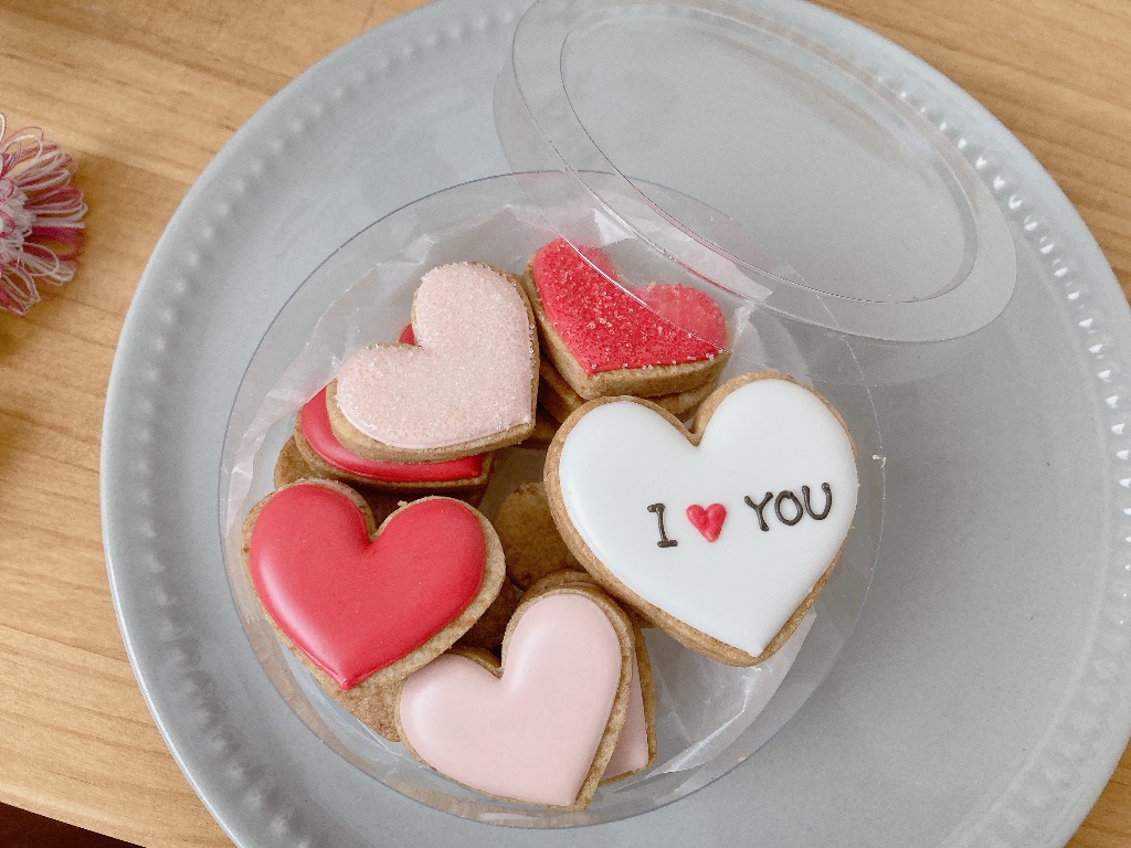 バレンタインにむけて、ハートのクッキーがたくさん店頭に並んでいます。