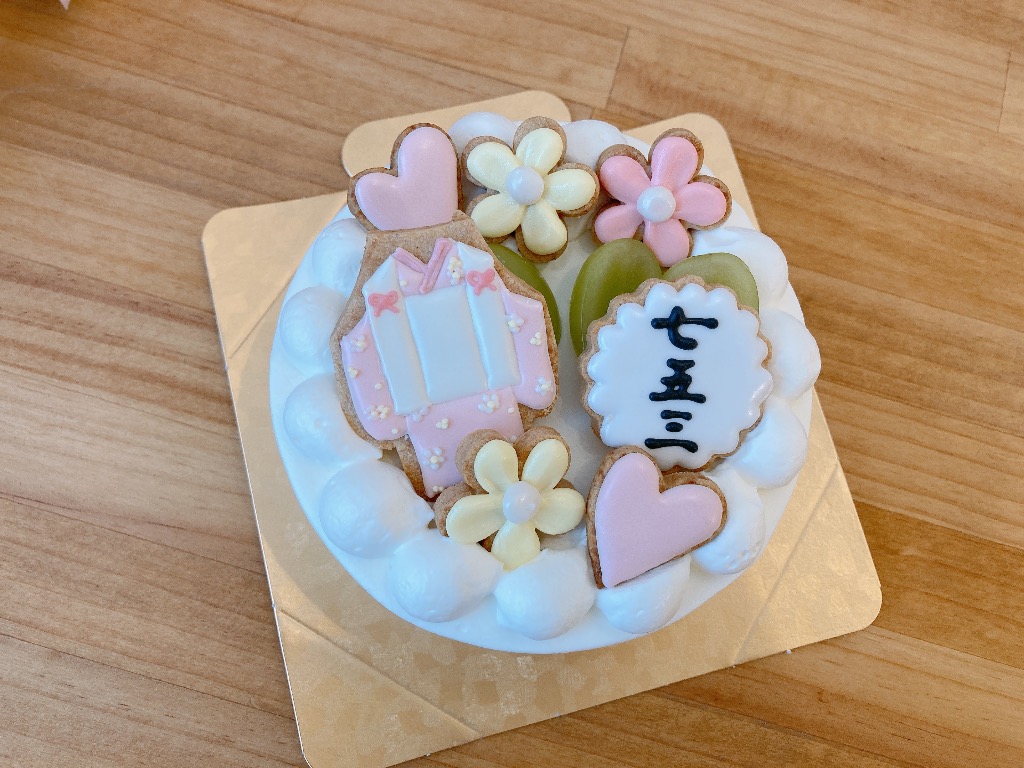 お祝いに添えるアイシングクッキーやケーキはいかがでしょうか?色違いや男の子袴バージョンもお作りできます。名入れも可能です。オーダーのお問い合わせお気軽にどうぞ♪