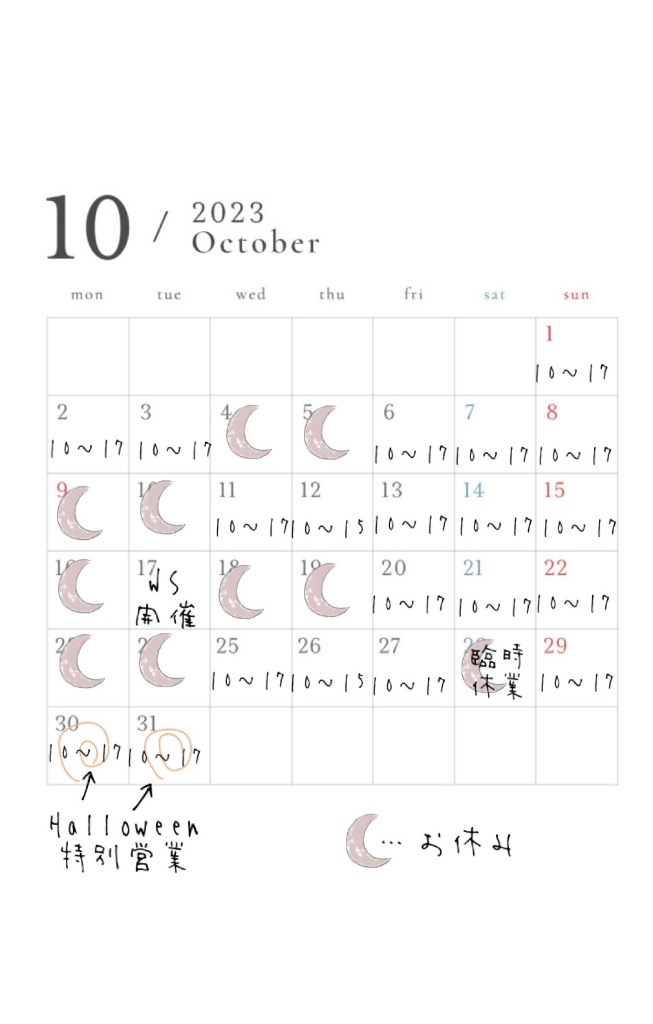 10月の営業について